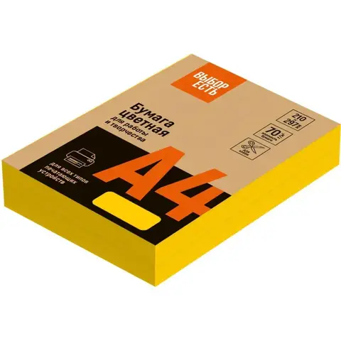Бумага цветная для офисной техники желтая интенсив (А4, 80 г/кв.м, 50 листов)