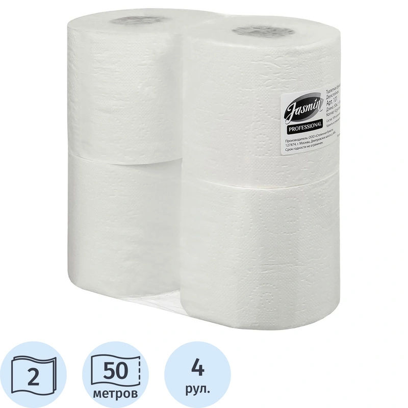 Бумага туалетная 2-слойная белая 50 метров (4 рулона в упаковке)
