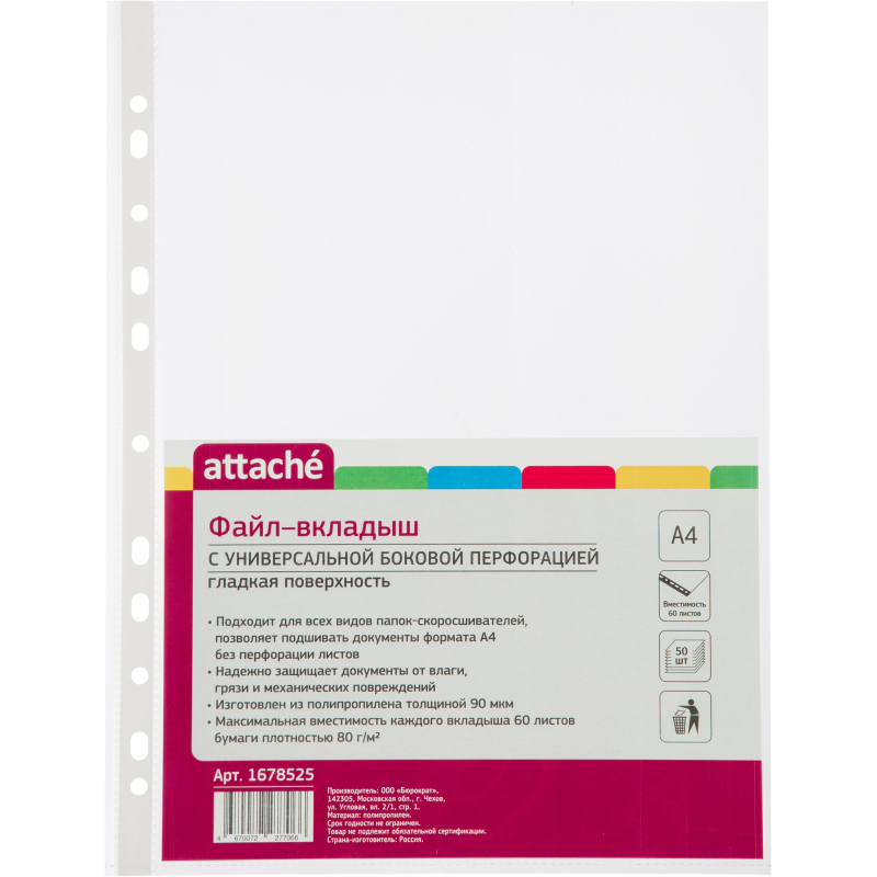 Файл-вкладыш Attache А4 50 мкм прозрачный гладкий 50 штук в упаковке