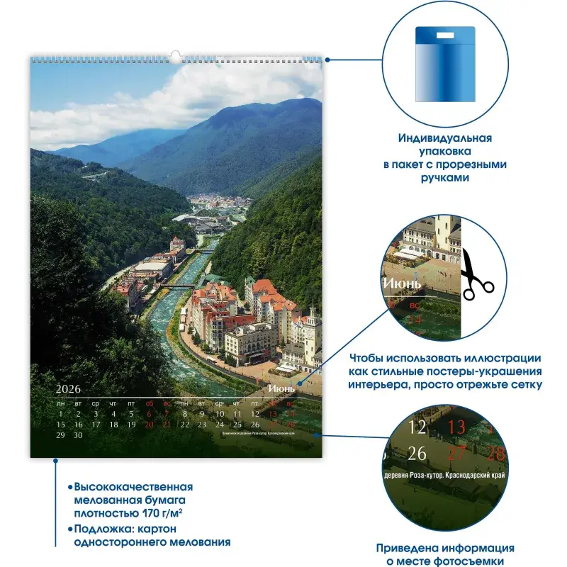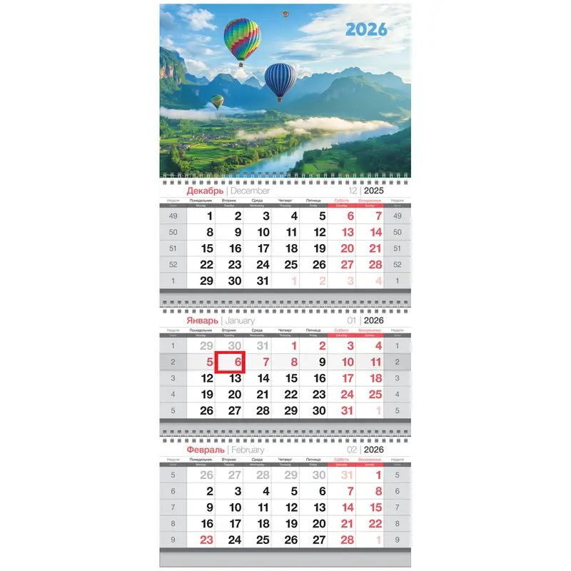 Календарь настенный моноблочный 2026 Россия с высоты птичьег.полета 420х580