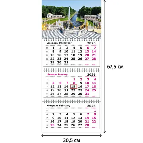 Календарь настенный 3-х блочный 2026 Attache Трио Стандарт, Парки, 305х675