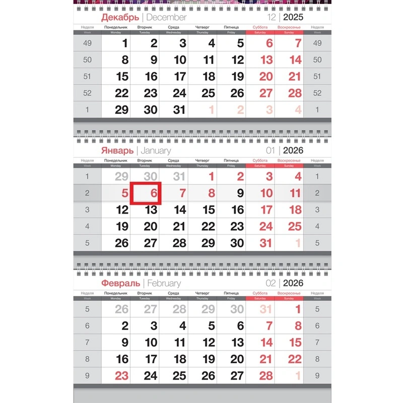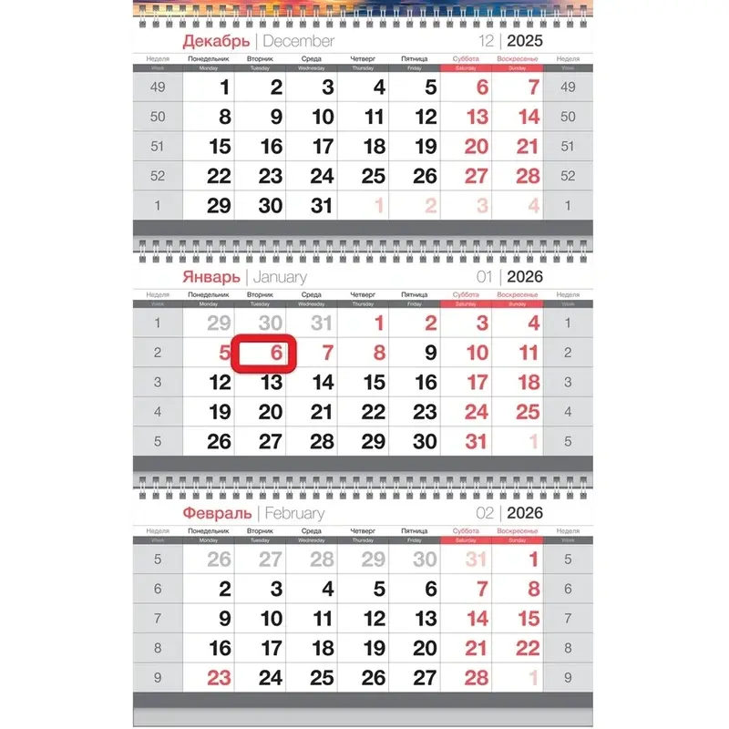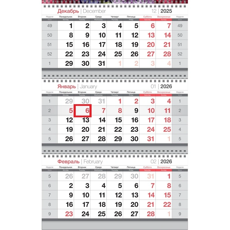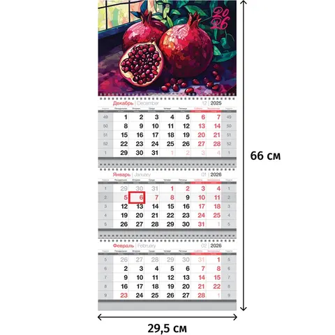 Календарь настенный 3-х блочный квартальный 2026 год Гранат 29.5x66 см