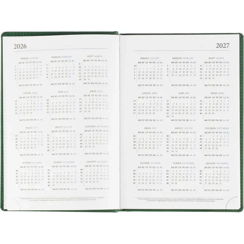 Ежедневник датированный 2026, зелен, А5, 148x218 мм, 352 стр,АТТАСНЕ Agenda