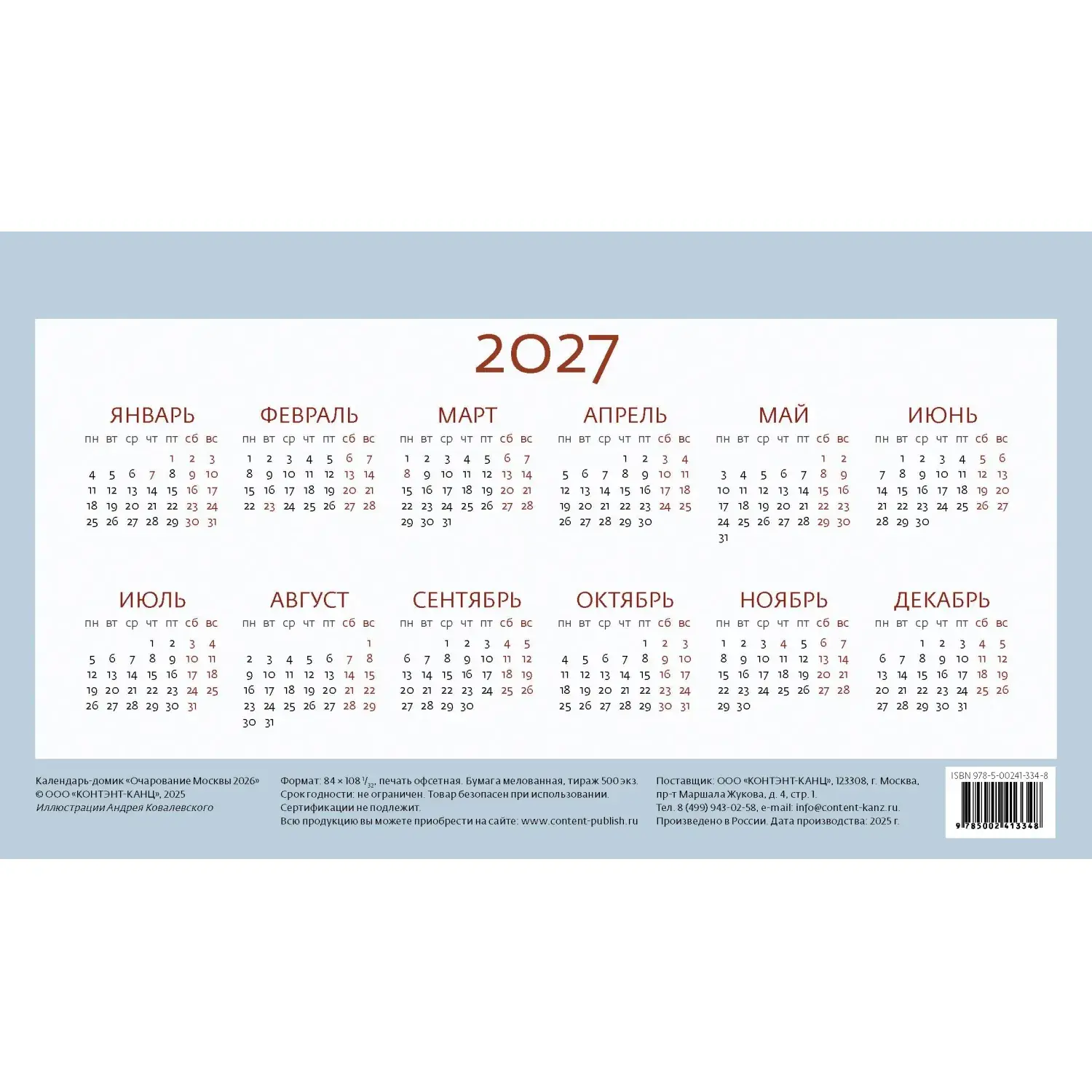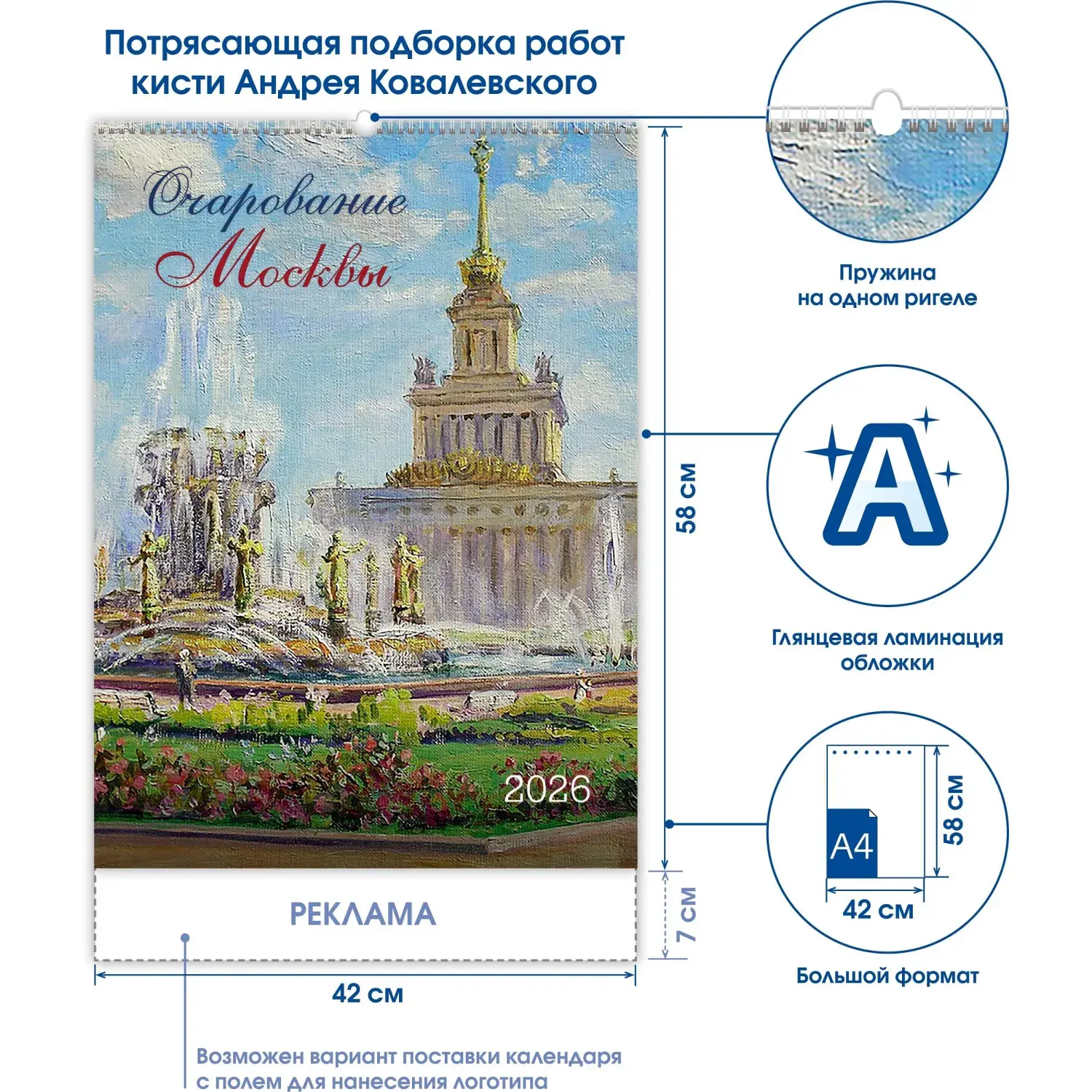 Календарь настенный моноблочный 2026 Очарование Москвы 420х580мм