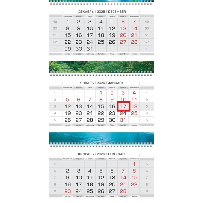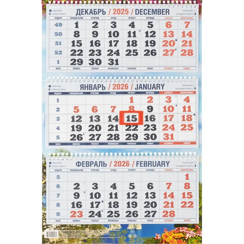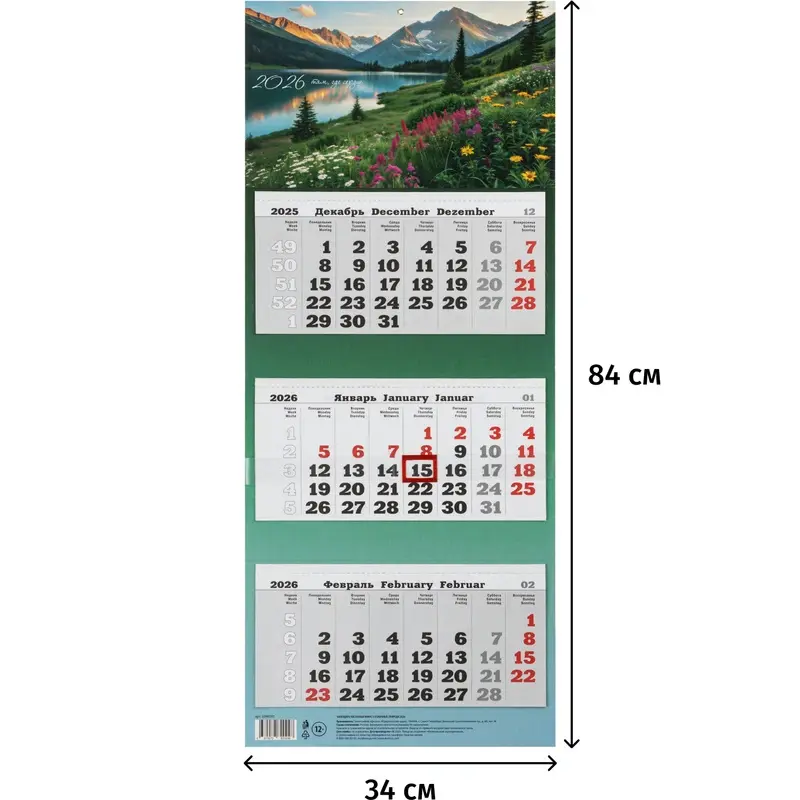 Календарь настенный 3-х блочный 2026 Природа 34x84 см