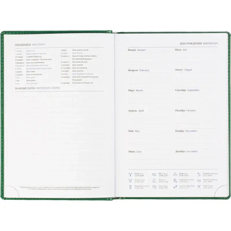 Ежедневник датированный 2026 А5+ SIDNEY NEBRASKA зелен, зол обрез 3-125/05