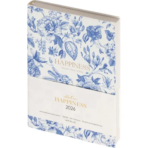 Ежедневник датированный 2026 IF 14х20см 176л, мягкий, Happiness I1732/blue
