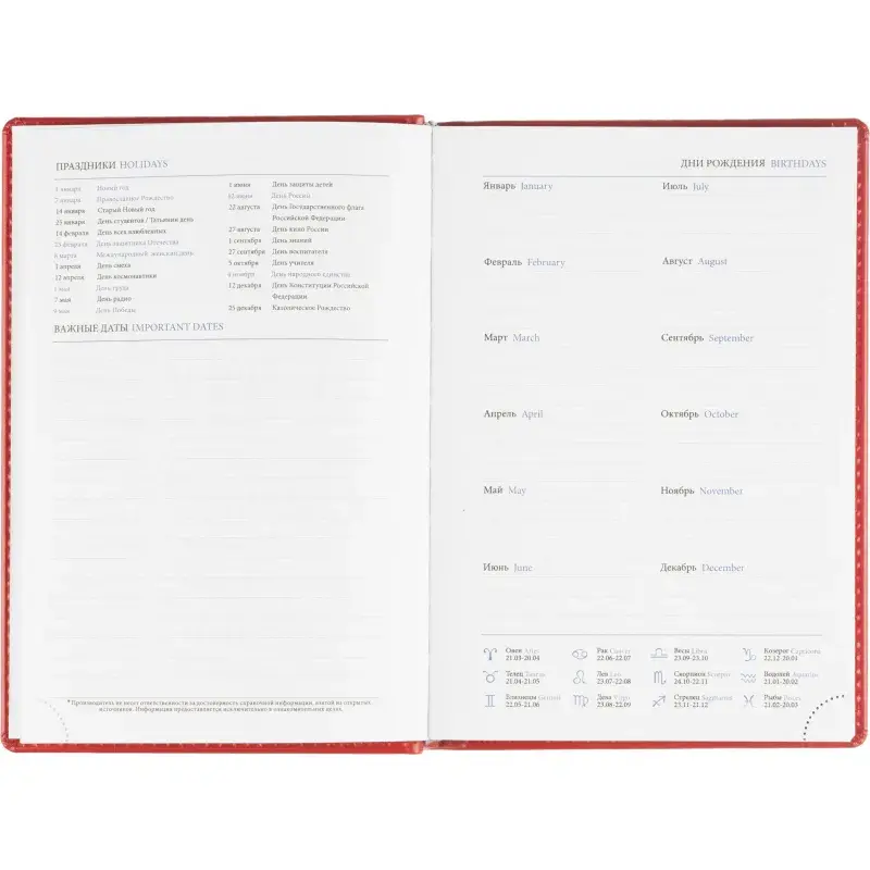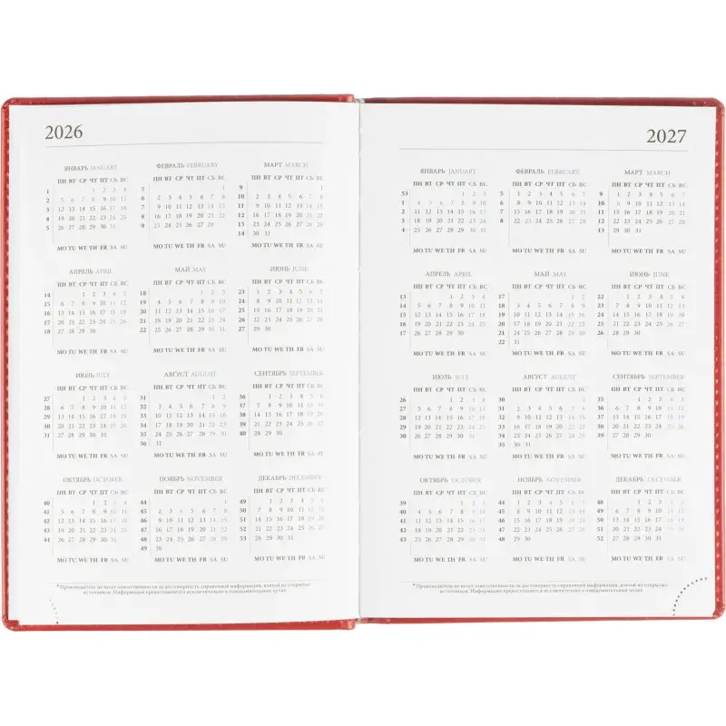 Ежедневник датированный 2026, красн, А5, 148x218 мм, 352 стр,АТТАСНЕ Agenda