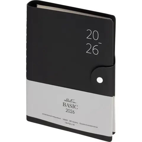 Ежедневник датированный 2026 IF 14х20см 160л, на спир, Basic I1751emb/black