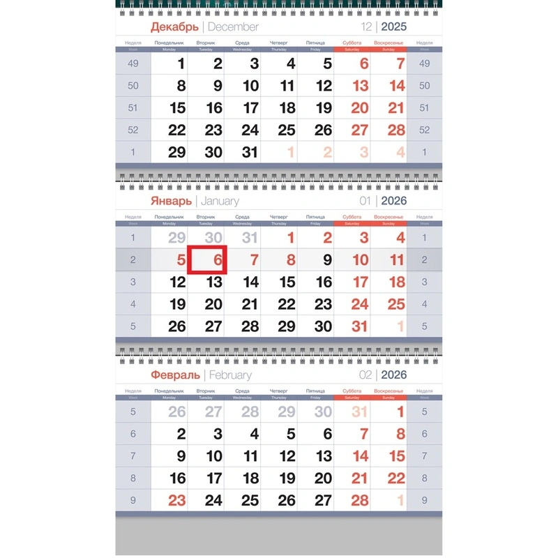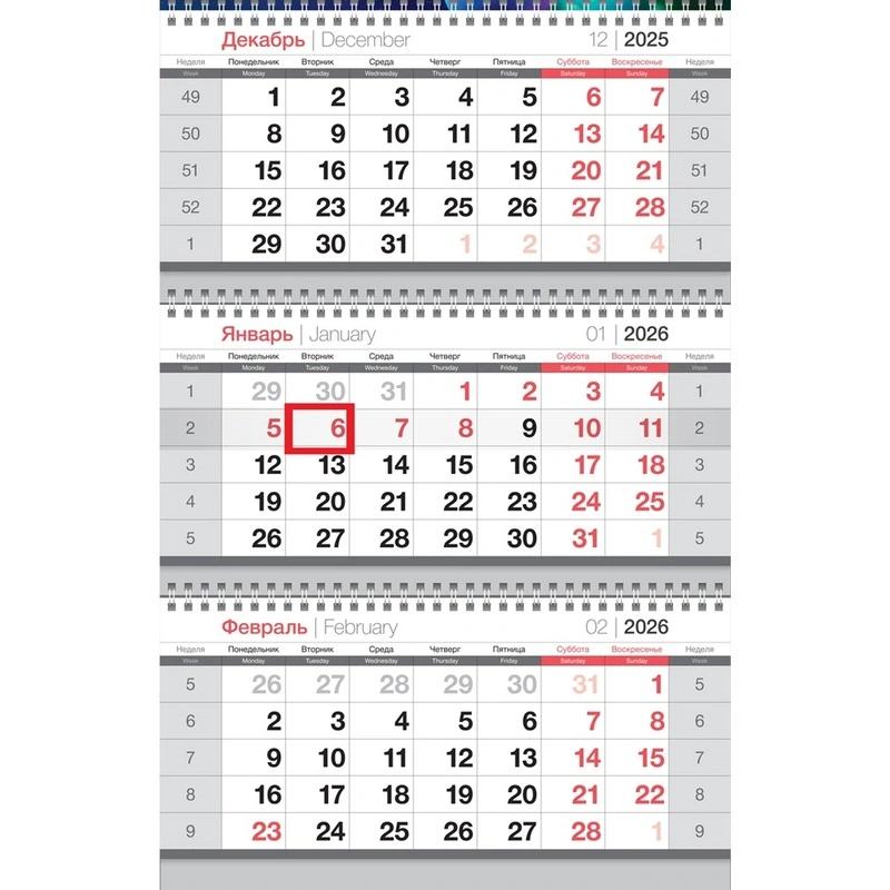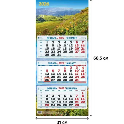 Календарь настенный 3-х блочный 2026 Госсимволика 31x68.5 см