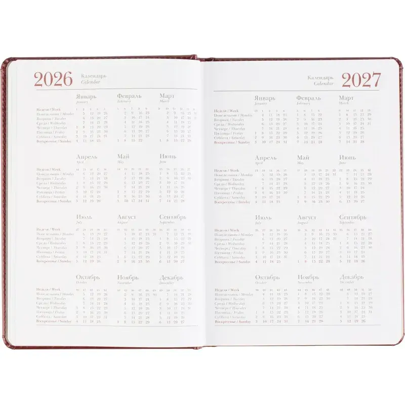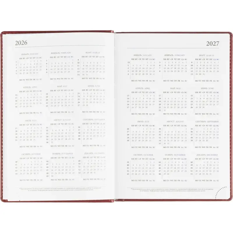 Ежедневник датированный 2026, бордо, А5, 148x218 мм, 352 стр,АТТАСНЕ Agenda