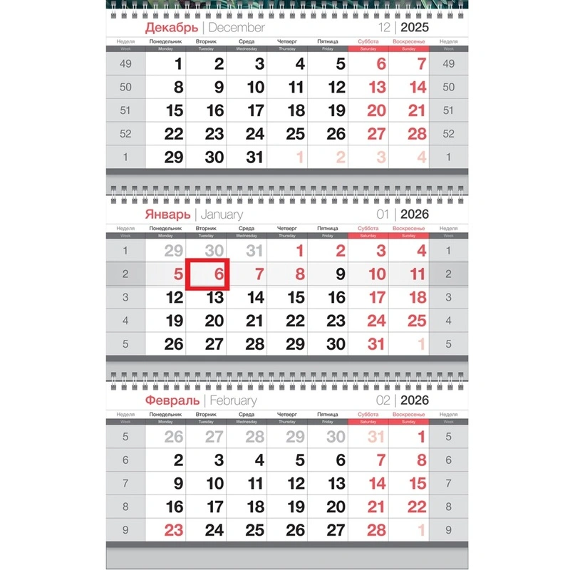 Календарь настенный 3-х блочный квартальный 2026 год Маяк 29.5x70 см