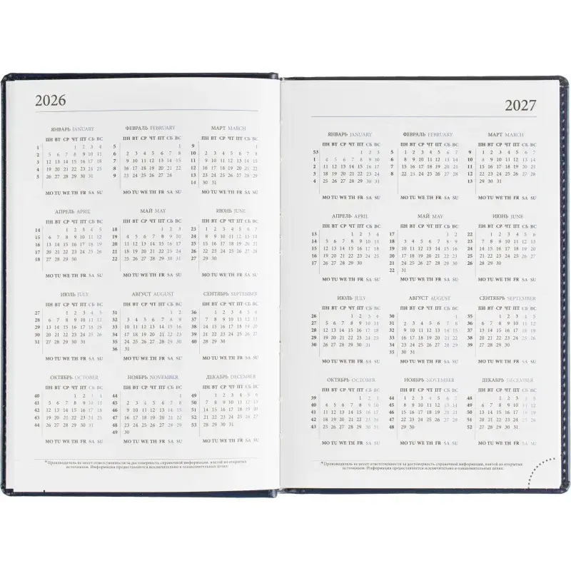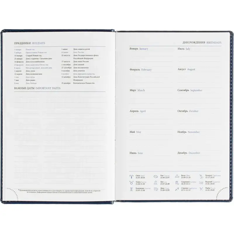 Ежедневник датированный 2026, синий, А5, 148x218 мм, 352 стр,АТТАСНЕ Agenda