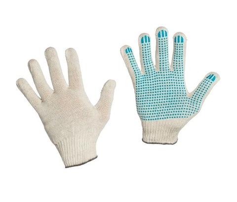Перчатки рабочие трикотажные с ПВХ Точка 6 нитей 10 класс 62 г (10 пар в упаковке, ручной оверлок)