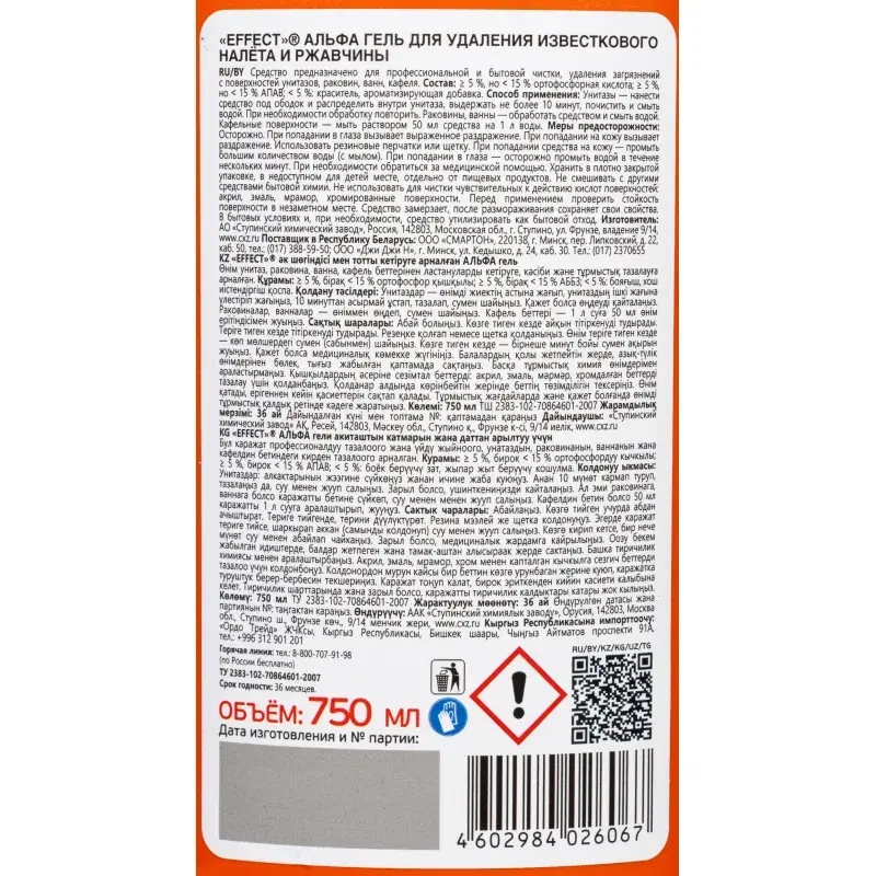 Чистящее средство для удаления известкового налета и ржавчины Effect Alfa 103 0.5 л