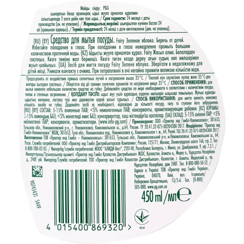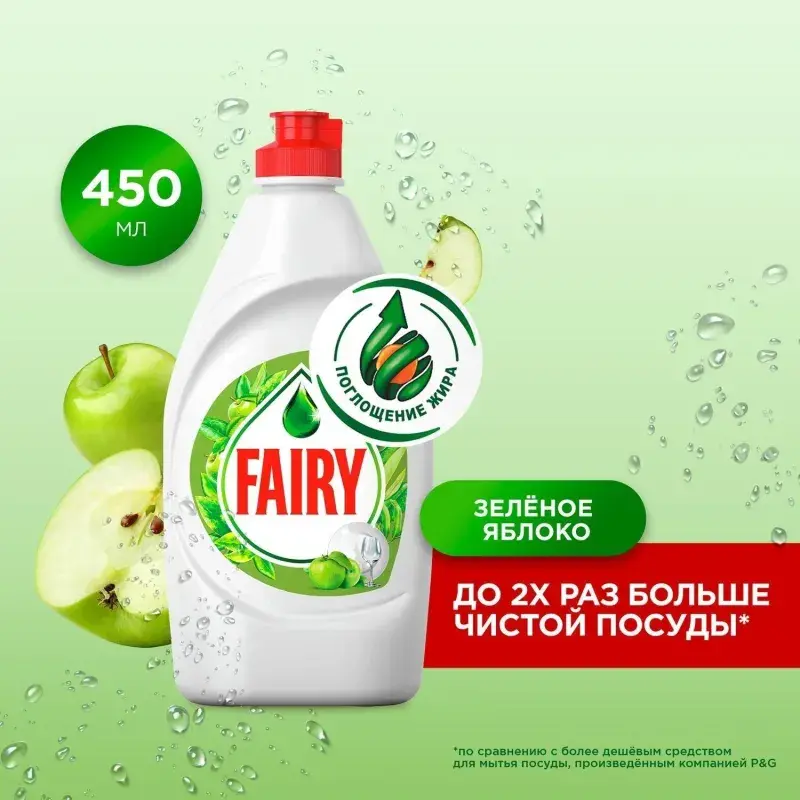Средство для мытья посуды Fairy Зеленое яблоко, 450мл