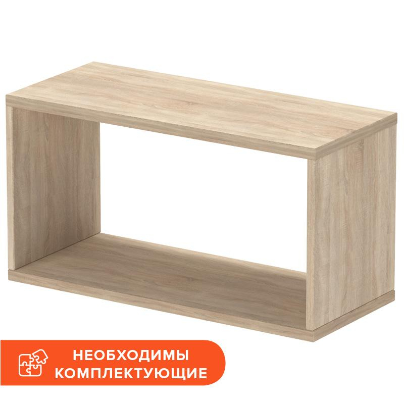 Внимание! Пожалуйста, проверяйте цвет изделия до начала сборки! Цвет на изображении товара в интернет-магазине или в печатном каталоге может отличаться от оригинала из-за особенностей цветопередачи. Каркас-антресоли Easy One устанавливается на стеллаж или шкаф для одежды Топ (верхняя крышка) изготовлена из ЛДСП толщиной 22 мм в декоре дуб сонома цвета, боковые стенки ЛДСП 18 мм в декоре дуб сонома. Задняя стенка (накладная) изготовлена из ХДФ толщиной 3,2 мм в декоре дуб сонома с внутренней стороны. Кромка видимых поверхностей - дуб сонома. Топ имеет свес фасадной части 20 мм. Дверки, при необходимости, поставляется отдельно. Элемент возможно укомплектовать дверями (арт. 959028).