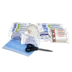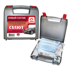 Аптечка для оказания первой помощи пострадавшим в дорожно-транспортных происшествиях. Аптечка изготовлена в соответствии с приказом Минздравсоцразвития РФ от 08.10.2020 года, № 1080Н. Состав: 1. Медицинские изделия 1.1 Маска медицинская нестерильная одноразовая 2 шт. 1.2 Перчатки медицинские нестерильные, размером не менее М 2 пары 1.3 Устройство для проведения искусственного дыхания 'Рот-Устройство-Рот' 1 шт. 1.4 Жгут кровоостанавливающий для остановки артериального кровотечения 1 шт. 1.5 Бинт марлевый медицинский размером не менее 5 м х 10 см 4 шт. 1.6 Бинт марлевый медицинский размером не менее 7 м х 14 см 3 шт. 1.7 Салфетки марлевые медицинские стерильные размером не менее 16 х 14 см № 10 2 уп. 1.8 Лейкопластырь фиксирующий рулонный размером не менее 2 см х 500 см 1 шт. 2. Прочие средства 2.1 Ножницы 1 шт. 2.2 Инструкция по оказанию первой помощи с применением аптечки для оказания первой помощи пострадавшим в дорожно-транспортных происшествиях (автомобильной) 1 шт. 2.3 Футляр 1 шт.