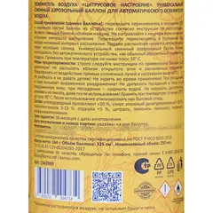 Баллон сменный для автоматического освежителя Luscan Цитрусовое настроение 250 мл Назначение/особенности: универсальный Баллон сменный Luscan подходит для автоматических систем дезодорирования, устраняет неприятные запахи и дарит лёгкий цитрусовый аромат. Подходит для дома и любых общественных мест. Формула сухого распыления экономична в использовании и не оставляет следов на поверхности. Способ применения: замена баллона - переведите переключатель в положение 'off' и извлеките пустой баллон из устройства согласно инструкции по эксплуатации. Вставьте Баллон сменный носиком наружу. Не направляйте в лицо при включении или установке интервала распыления. Переведите переключатель в положение 'on', выбрав желаемый интервал распыления. Первое распыление начнётся автоматически через несколько секунд. Универсальный сменный аэрозольный баллон можно использовать без автоматического устройства, как обычный аэрозольный освежитель воздуха. Применять при температуре не ниже плюс 10C. Меры предосторожности: строго следуйте инструкции по применению! Баллон под давлением! Не распылять вблизи открытого огня и раскалённых предметов! Предохранять от воздействия прямых солнечных лучей и нагревания выше 40C! Не разбирать и не давать детям! Не курить во время применения! Не допускать попадания в глаза и на раздражённую кожу, при попадании - промыть водой. Не нарушать целостности упаковки и не сжигать, даже после использования! После использования утилизировать как бытовой отход. Состав: углеводородный пропеллент > 30%, спирт этиловый денатурированный > 30%, пропиленгликоль 5-15%, отдушка &706; 5%. Условия хранения: хранить при температуре от −20 до +40С. Срок годности: 36 месяцев с даты изготовления (дату изготовления см. на упаковке).