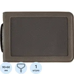 Бейдж вертик двойн с магн.креп,шнур,70x112мм(60х90мм)Экокожа графит EKM-4V