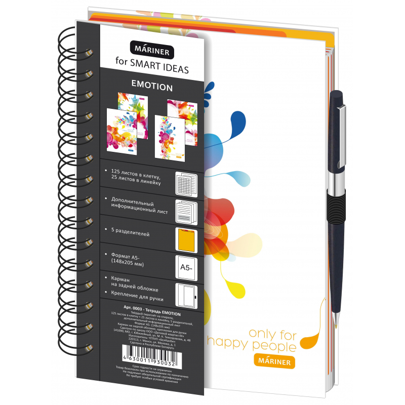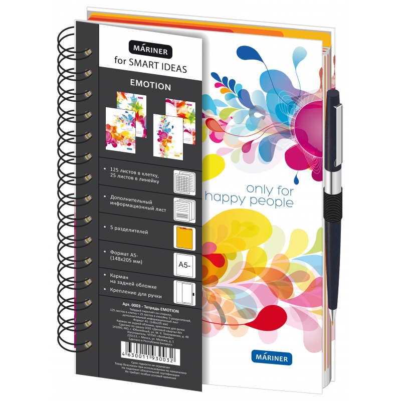 Бизнес-тетрадь Emotion,А5,150л.,148х20., 5 раз, рез под руч, кл+лин,0003