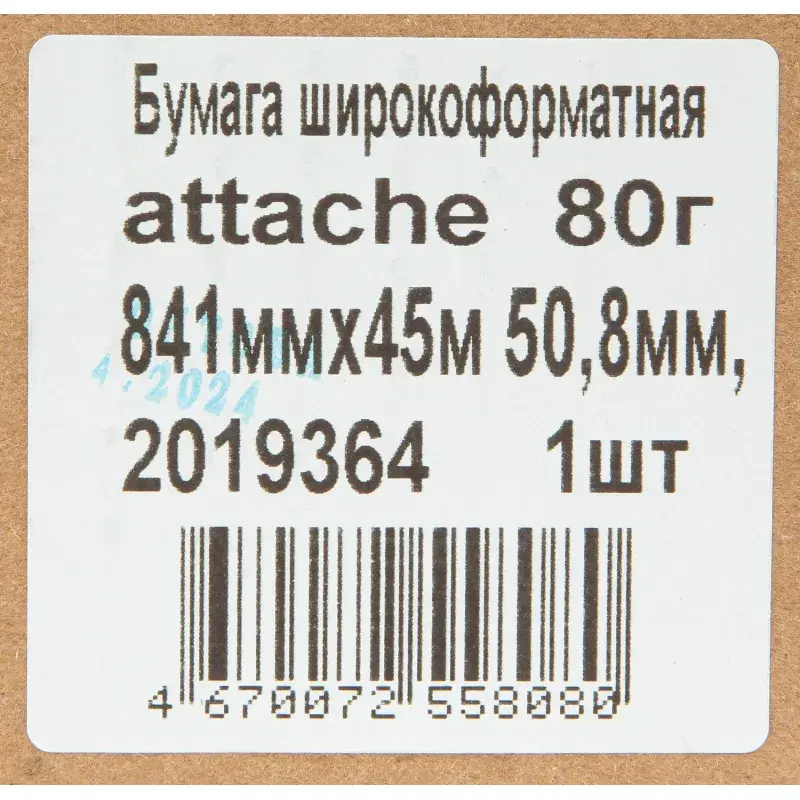 Бумага широкоформатная Attache 80г 841ммх45м 50,8мм