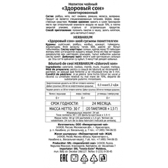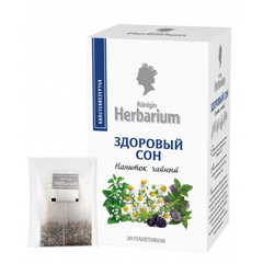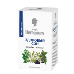 Чай Konigin Herbarium Здоровый сон травяной 20 пакетиков. Мы постарались создать напиток, который мягко успокоит и поможет подготовиться ко сну. В этот ансамбль утонченным аккордом вплетается кисло-сладкий вкус чая "ройбуш", свежий вкус мяты и ежевики, пряный лимонный вкус мелиссы, изысканная горечь ромашки и валерианы. Состав: ройбуш, мята, лист ежевики, ромашка, мелисса, валериана. Способ приготовления: положить пакетик в чашку, залить кипятком, дать настояться 5 минут. Тип упаковки: картонная. Хранить в сухом прохладном месте при относительной влажности воздуха не выше 70%, в плотно закрытой упаковке, отдельно от остропахнущих продуктов, при температуре от 0 до +25°C. Страна производства: Россия.