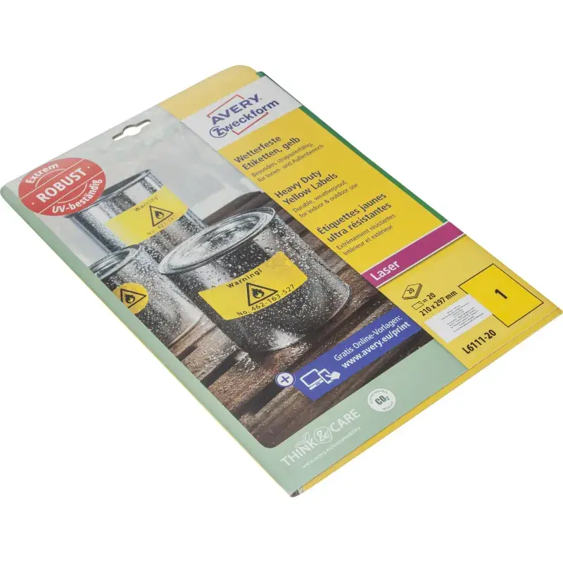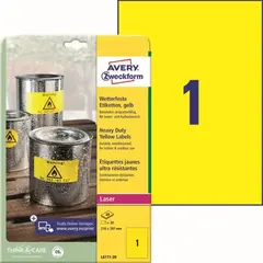 Этикетки самоклеящиеся всепогодные L6111-20 210x297мм желт. 20шт/уп