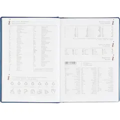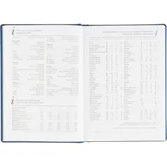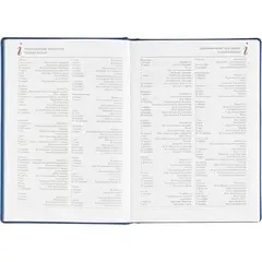 Внутренний блок содержит 168 листов белой офсетной бумаги плотностью 70 г/кв.м, с линейной разметкой и двухцветной печатью. Листы скреплены сшивкой, что делает ежедневник прочным и долговечным. Включена датированная разметка на 2026 год, а также календарный блок на 2 года. Листья без скругления, перфорации и вырубки.