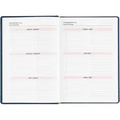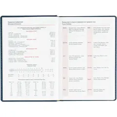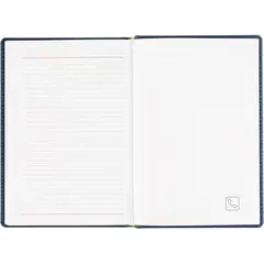 Встроенная закладка-ляссе. Твёрдая обложка с прошивкой по периметру выполнена из искусственной кожи высокого качества. Возможно нанесение логотипа на обложку любым способом тиснения (блинт или фольга).