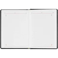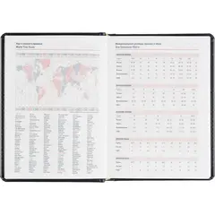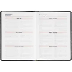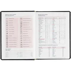 Встроенная закладка-ляссе. Твёрдая обложка с прошивкой по периметру выполнена из искусственной кожи высокого качества. Возможно нанесение логотипа на обложку любым способом тиснения (блинт или фольга).