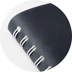 Мягкая обложка из приятной искусственной кожи с печатью имеет фигурный клапан на кнопке, который не позволит растрепаться страницам. Удобное крепление на полускрытой спирали позволяет удалять ненужные листы, не повредив при этом сам блок.