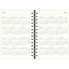 Датированный внутренний блок в линейку на 160 листов (320 страниц) из высококачественной бумаги цвета слоновой кости плотностью 70 г/кв.м. Информационный блок ежедневника включает титульный лист, календари на 2026-2027 гг. и развороты для заметок в начале и конце блока.