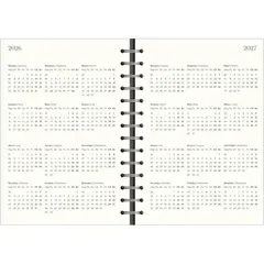 Датированный внутренний блок в линейку на 160 листов (320 страниц) из высококачественной бумаги цвета слоновой кости плотностью 70 г/кв.м. Информационный блок ежедневника включает титульный лист, календари на 2026-2027 гг. и развороты для заметок в начале и конце блока.