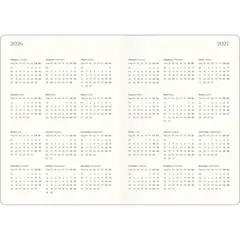 Датированный внутренний блок в линейку на 176 листов (352 страницы) из высококачественной бумаги цвета слоновой кости плотностью 70 г/кв.м с окрашенным в золото обрезом. Информационный блок ежедневника включает в себя: титульный лист, календари на 2026-2027 гг., раздел «планы на год», развороты для заметок в начале и конце блока, планер перед каждым месяцем.