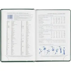 Ежедневник имеет формат A6 и содержит 168 листов. Твёрдая обложка с поролоном, выполненная из высококачественной искусственной кожи зелёного цвета, придаёт изделию элегантный и профессиональный вид. Страницы выполнены из белой офсетной бумаги плотностью 70 г/кв.м.