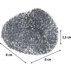 Губка-мочалка для посуды металлическая 8x8 см 12 г (5 штук в упаковке). Губка-мочалка предназначена для эффективной чистки кастрюль, чугунных сковород и противней. Также можно использовать для удаления грязи с керамики, бытовой техники - плит, микроволновых печей, духовок и т.д. Оцинкованная железная проволока, из которой изготовлена мочалка, быстро и качественно удаляет въевшиеся загрязнения. Изделие отличается длительным сохранением своих эксплуатационных свойств. Рекомендуется использовать губку в хозяйственных перчатках. После использования тщательно промыть и просушить. Размер губки: 8x8x2.5 см. Поставляется упаковками по 5 штук.