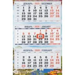 Календарь настенный 3-х блочный 2026 Лазурный берег 31x68.5 см