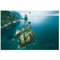 Квартальный календарь bg Standard «Маяк» на 2026 год — отличный инструмент для планирования в офисе и дома. Размер календаря — 295×700 мм. Ориентация — вертикальная. Календарь состоит из трёх блоков по 12 листов, закреплённых на трёх гребнях. Изготовлен из белой мелованной бумаги плотностью 90 г/кв.м с двухцветной печатью. Подложки изготовлены из чистоцеллюлозного мелованного картона 290 г/кв.м. Нижняя имеет цветность в одну краску, верхняя — полноцветная. Бегунок-курсор помогает легко ориентироваться по датам, а пикколо позволяет удобно разместить календарь на стене.