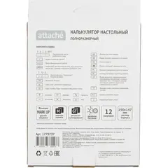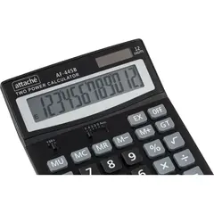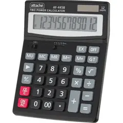 Калькулятор Attache полноразмерный настольный AF-445B настольный с 12-разрядным дисплеем. Эргономичная форма металлической панели и крупные клавиши создают максимальный комфорт в использовании. Корпус изготовлен в черном цвете с кнопками серого и черного цвета. Оптимальный и необходимый набор функций, среди которых: расчет процентов, вычисление квадратного корня, независимая память (М+, М-, МRC). Функция вычисления налога: нет. Функция коррекции вычислений: нет. Наклонный дисплей: нет. Большой двенадцатиразрядный дисплей отображает большие значения с высокой точностью округления. В калькуляторе имеется три источника питания: круглая батарейка (входит в комплект и уже установлена внутри калькулятора), место для батарейки типа АА и солнечная батарея. Размер калькулятора: 190x147x41 мм. Материал клавиатуры: пластик. Число строк дисплея: 1. Вес: 0.19 кг. Цвет: черный. Гарантийный срок: 18 месяцев.