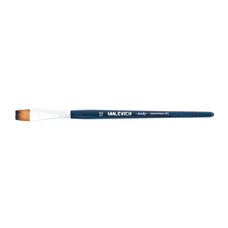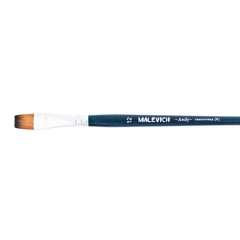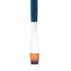 Кисть из синтетики Andy, плоская № 12. Кисть из синтетики серии Andy - это мягкая универсальная синтетика, которая подходит практически для любых видов красок. Ей удобно работать с гуашью, маслом, акварелью, акрилом, темперой. Маслом можно работать в лессировочной технике с разбавителем. Синтетика рыжего цвета с темным кончиком, ручка покрыта синим лаком, ворс закреплен втулкой из латуни с двойной обжимкой. Ручка кисти короткая - 14 см. Длина ворса (выставка) короткая. Номер кисти соответствует диаметру пучка в мм.