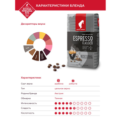 Кофе в зернах Julius Meinl Эспрессо классико - это бленд отборной арабики и робусты, выращенных в Южной, Центральной Америке и Азии - микс насыщенного по вкусу и аромату кофе. В аромате вы услышите нотки свежеиспеченного хлеба, а в послевкусии ощутите темный шоколад и какао. Состав: смесь арабики и робусты. Степень обжарки: темная. Способ приготовления: приготовить в кофемашине, турке или кофеварке. Вес: 1 кг. Тип упаковки: вакуумный пакет. Условия хранения: в сухом прохладном месте при температуре не выше 25 °С. Страна производства: Италия.