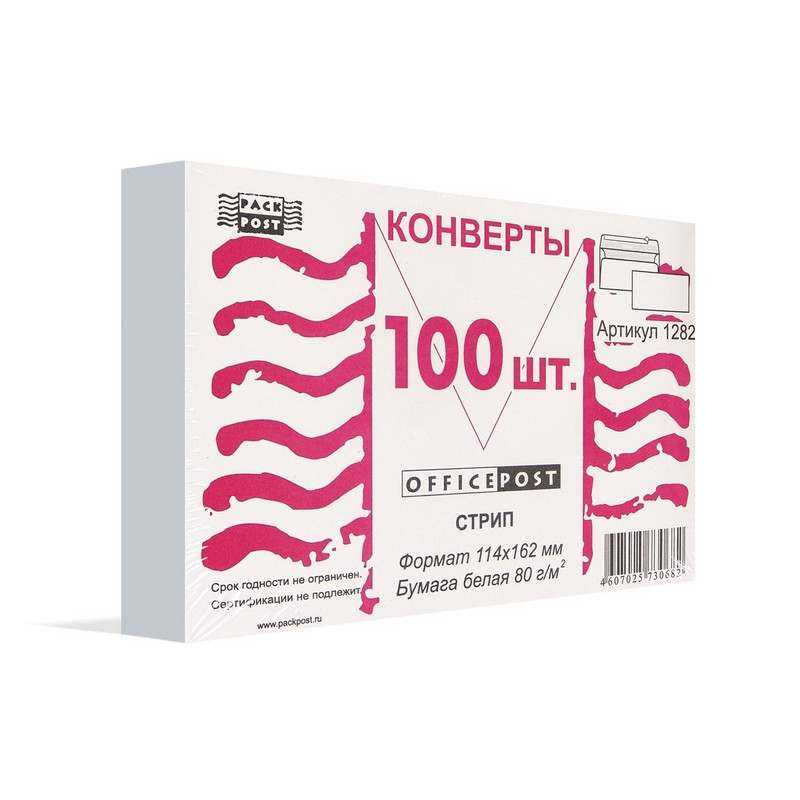 Конверт OfficePost С6 80 г/кв.м белый стрип с внутренней запечаткой (100 штук в упаковке)