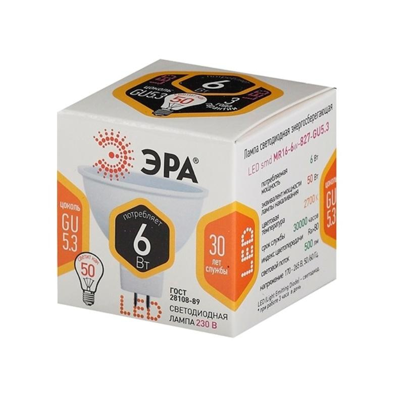 Светодиодная лампа формы софит ЭРА (матовая), излучает теплый белый свет, с цоколем GU5.3, мощность 6 Вт. Современный, качественный и доступный источник света. Создает яркое ровное освещение и экономит до 90% электроэнергии по сравнению с лампой накаливания с аналогичным световым потоком. Модель LED MR16-6W-827-GU5.3.Преимущества изделия:— Срок службы 35000 h — Низкое энергопотребление— Диапазон рабочих температурот — 25 до 50°C— Мгновенно включается и не нагреваетсяХарактеристики изделий:— Коэффициент цветопередачи Ra ≥ 80— Световой поток 480 Лм— Цветовая температура 2700 КОсновные габариты (мм): — Длина 50 мм (L)— Диаметр 50 мм (D)Области применения:— Бытовое использование: потолочные, настенные, настольные светильники, люстры и бра— Коммерческое освещение: салоны красоты, столовые, кафе, рестораны, финтес-центры и т. д.Внешний вид и/или характеристики товара могут быть изменены производителем в соответствии с производственным процессом.