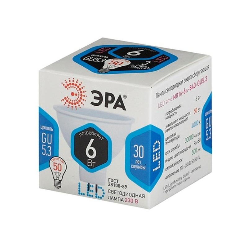 Светодиодная лампа формы софит ЭРА (матовая), излучает естественный белый свет, с цоколем GU5.3, мощность 6 Вт. Современный, качественный и доступный источник света. Создает яркое ровное освещение и экономит до 90% электроэнергии по сравнению с лампой накаливания с аналогичным световым потоком. Модель LED MR16-6W-840-GU5.3.Преимущества изделия:— Срок службы 35000 h — Низкое энергопотребление— Диапазон рабочих температурот — 25 до 50°C— Мгновенно включается и не нагреваетсяХарактеристики изделий:— Коэффициент цветопередачи Ra ≥ 80— Световой поток 480 Лм— Цветовая температура 4000 КОсновные габариты (мм): — Длина 50 мм (L)— Диаметр 50 мм (D)Области применения:— Бытовое использование: потолочные, настенные, настольные светильники, люстры и бра— Коммерческое освещение: салоны красоты, столовые, кафе, рестораны, финтес-центры и т. д.Внешний вид и/или характеристики товара могут быть изменены производителем в соответствии с производственным процессом.