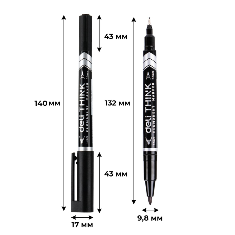 Маркер перманентный двусторонний Deli Think 0,5/1 мм черный EU211-BK