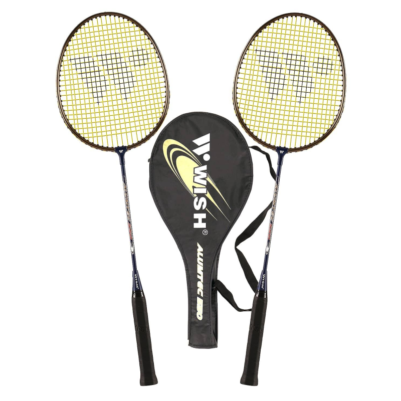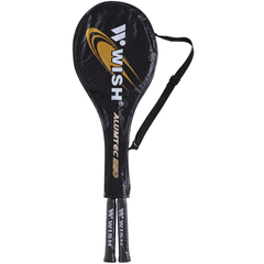 Набор ракеток для бадминтона Wish состоит из двух ракеток классической овальной формы и удобного чехла из ПВХ для переноски и хранения. Набор был разработан для бадминтонистов-любителей, которым требуется максимально простая в игре и маневренная ракетка. Широкая алюминиевая рама в сочетании с новейшими технологиями виброгашения обеспечивает уверенную и комфортную игру, а оптимальное для начинающих игроков натяжение струн позволит выполнять сильные удары без лишних усилий. В комплекте к ракеткам для бадминтона идет укороченный чехол 3/4 с логотипом бренда.- Меньшее поглощение энергии волана при ударе;- Долгий срок службы благодаря широкому ободу;- Удобное хранение и транспортировка в чехле.Обратите внимание! Рукоятка ракетки упакована в защитную полимерную пленку. На пленке белым цветом нанесен логотип Wish. На самой рукоятке белый логотип отсутствует - вместо него выполнено тиснение на оплетке черного цвета.