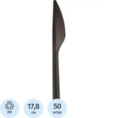 Нож одноразовый столовый 178,5 мм, черный. ПП, 50шт/уп(4031)