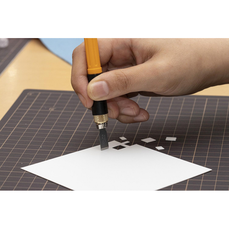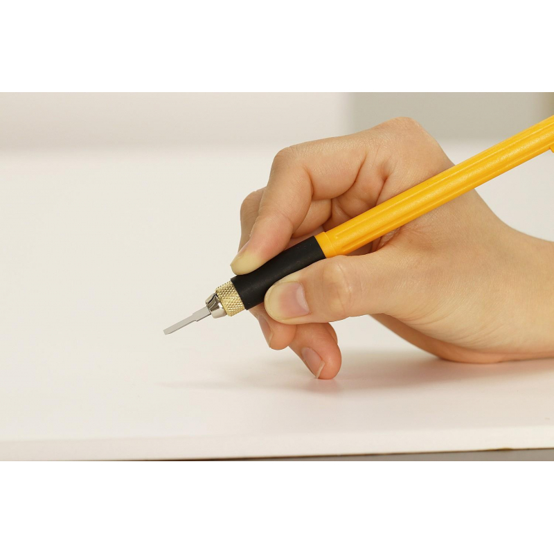 Профессиональный художественный нож Olfa AK-4 с рукояткой ComfortGrip и функцией быстрой смены лезвия обладает идеально продуманным дизайном и устройством стабилизации. Удобно лежит в руке, что обеспечивает наилучшее качество резки. Благодаря дополнительному весу в нижней части и механизму защиты от перекоса Вы можете безопасно и плавно завершить свой художественный проект. В комплект входят два прецизионных лезвия, одно зубило и одно изогнутое резное лезвие. Лезвия других видов приобретаются отдельноМеры предосторожности: - При работе с лезвиями используйте средства защиты. - Не утилизируйте лезвия с бытовыми отходами. - Хранить в недоступном для детей месте.