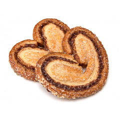 Слоеные ушки. Тонкие, карамелизированные сахаром. Не крошатся. Состав: мука пшеничная в/с, сахар, маргарин для слоеного теста (дезодорированные растительные масла, вода, эмульгаторы (эфиры глицерина и лимонной и жирных кислот, эфиры полиглицерина и жирных кислот), соль, ароматизатор 'Масло', регулятор кислотности лимонная кислота, консерванты (сорбиновая кислота, бензоат натрия), краситель (каротины)), маргарин для выпечки (дезодорированные растительные масла, вода, эмульгаторы (моно- и диглицериды жирных кислот, полиоксиэтилен, лецитин (соевый)), соль, консерванты (сорбиновая кислота, бензоат натрия), ароматизатор 'Масло', краситель (каротины), регулятор кислотности лимонная кислота), соль, какао-порошок, регулятор кислотности лимонная кислота, ароматизатор 'Карамель'. Пищевая ценность: белки - 7.0 г, жиры - 20.0 г, углеводы - 63.0 г. Энергетическая ценность: 450 кКал/ 1880 кДж. Срок годности от даты изготовления: 6 месяцев. Хранить при температуре 18+5С и относительной влажности воздуха не более 75%. Масса нетто: 200 г. Тип упаковки: картонная. Страна производства: Россия. ТУ 10.72.19-007-20329883-2020